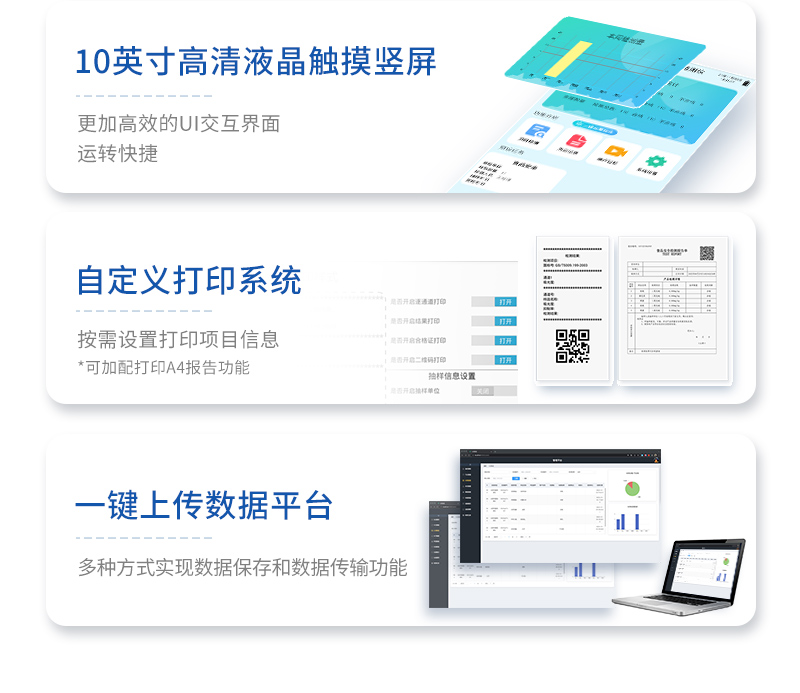 | 儀器采用臺式一體化系統(tǒng)檢測技術(shù),新型農(nóng)殘檢測模塊、數(shù)字化管理模塊、無線通訊模塊高度集成于一體,同時(shí)預(yù)留升級檢測方法。 | 儀器檢測模塊標(biāo)準(zhǔn)化、智能化,可隨意自由組合。檢測箱體內(nèi)置多個(gè)標(biāo)準(zhǔn)檢測單元,檢測模塊可以調(diào)整配置。 | 儀器采用全新安卓智能系統(tǒng),主控芯片采用 ARM Cortex-A7,RK3288/4核處理器,10.1寸高清液晶觸摸豎屏,更加**的UI交互界面,運(yùn)轉(zhuǎn)快捷;儀器配備無線通信模塊: 4G(APN)通訊模塊、Wifi模塊,藍(lán)牙傳輸,同時(shí)具有雙USB接口以及RJ45接口能以多種方式實(shí)現(xiàn)數(shù)據(jù)保存和數(shù)據(jù)傳輸功能。 | 創(chuàng)新檢測模式:檢測通道:≥24通道;采用精密旋轉(zhuǎn)比色池設(shè)計(jì),使用同芯片同光源校準(zhǔn)精度,解決不同光源之間的誤差值。1-12通道間誤差0.1%。(**號:ZL202022821055.2) 儀器具有自動識別比色皿檢測功能,即:將樣品比色皿放入儀器后,點(diǎn)擊樣品檢測,儀器自動識別比色皿進(jìn)行通道檢測。 | 進(jìn)口高精光源:高精度進(jìn)口四波長冷光源,通道配置 410、520、590、630nm 波長光源,一個(gè)光源芯片驅(qū)動一個(gè)光源,誤差極小,每臺設(shè)備單獨(dú)**校準(zhǔn)光源,**比對,同時(shí)參照四種不同波段光源全方位覆蓋市面上99%的農(nóng)殘食品項(xiàng)目檢測,可按照實(shí)際需求進(jìn)行食品項(xiàng)目檢測升級。 | 高精光源系統(tǒng): ①儀器光源采用進(jìn)口超高亮發(fā)光二極管,光源亮度可以自動調(diào)節(jié)與校準(zhǔn) ②智能恒流穩(wěn)壓,光強(qiáng)自動校準(zhǔn),長時(shí)間連續(xù)工作光源無溫漂現(xiàn)象。 | 智能操作分析系統(tǒng): | 便捷操作系統(tǒng):設(shè)備檢測時(shí)可在同一檢測界面自動對應(yīng)相關(guān)檢測通道一次性選擇1-24個(gè)樣品名稱,無須退出界面,節(jié)省操作時(shí)間。 | 數(shù)據(jù)集成系統(tǒng):設(shè)備首頁自動統(tǒng)計(jì)檢測數(shù)據(jù)包含:周檢測數(shù)據(jù)、月檢測數(shù)據(jù),全部檢測總數(shù)量,均包含檢測總數(shù),合格數(shù),不合格數(shù),以及相關(guān)柱形分析圖,對各項(xiàng)檢測數(shù)據(jù)清晰掌握,無需電腦查詢,更加快捷直觀。 | 項(xiàng)目預(yù)設(shè)系統(tǒng):支持添加單個(gè)及多個(gè)相同或不相同的任務(wù)預(yù)設(shè),一鍵快速調(diào)取,每一個(gè)任務(wù)分別可以設(shè)置不同的樣品、批次、編號、來源、備注、抽樣信息、檢測信息、受檢信息、復(fù)核信息等更多信息。 | 數(shù)據(jù)監(jiān)管系統(tǒng):同步對接監(jiān)管平臺,數(shù)據(jù)可局域網(wǎng)和互聯(lián)網(wǎng)數(shù)據(jù)上傳,檢測結(jié)果可選擇直接傳至食品安全監(jiān)管平臺。集成OSS輸出存儲服務(wù)、區(qū)分設(shè)備定向管理應(yīng)用,進(jìn)行區(qū)域食品安全監(jiān)管及大數(shù)據(jù)分析處理與數(shù)據(jù)統(tǒng)計(jì),檢測區(qū)域食品安全長短期動態(tài),達(dá)到食品安全問題預(yù)估、預(yù)警。 | 自定義打印系統(tǒng):內(nèi)置新創(chuàng)自定義打印系統(tǒng),可按需靈活設(shè)置開啟或關(guān)閉:產(chǎn)品合格證(國家農(nóng)業(yè)部標(biāo)準(zhǔn)),二維碼,抽樣信息、檢測信息,受檢信息、復(fù)核信息、抽樣日期、檢測日期等信息的打印。 | A4版本報(bào)告打印功能:設(shè)備可自動生成A4版報(bào)告,外接打印機(jī)即可打印 | 系統(tǒng)遠(yuǎn)程更新功能:可定向分客戶分儀器更新系統(tǒng),按照不同客戶后期實(shí)際需求添加項(xiàng)目,無需設(shè)備返廠,即可遠(yuǎn)程實(shí)時(shí)升級全新系統(tǒng),節(jié)省時(shí)間成本及避免運(yùn)輸造成設(shè)備損壞。 | 安全證書,放心保障:儀器具有中國計(jì)量科學(xué)研究院校準(zhǔn)證書,**認(rèn)證。 |