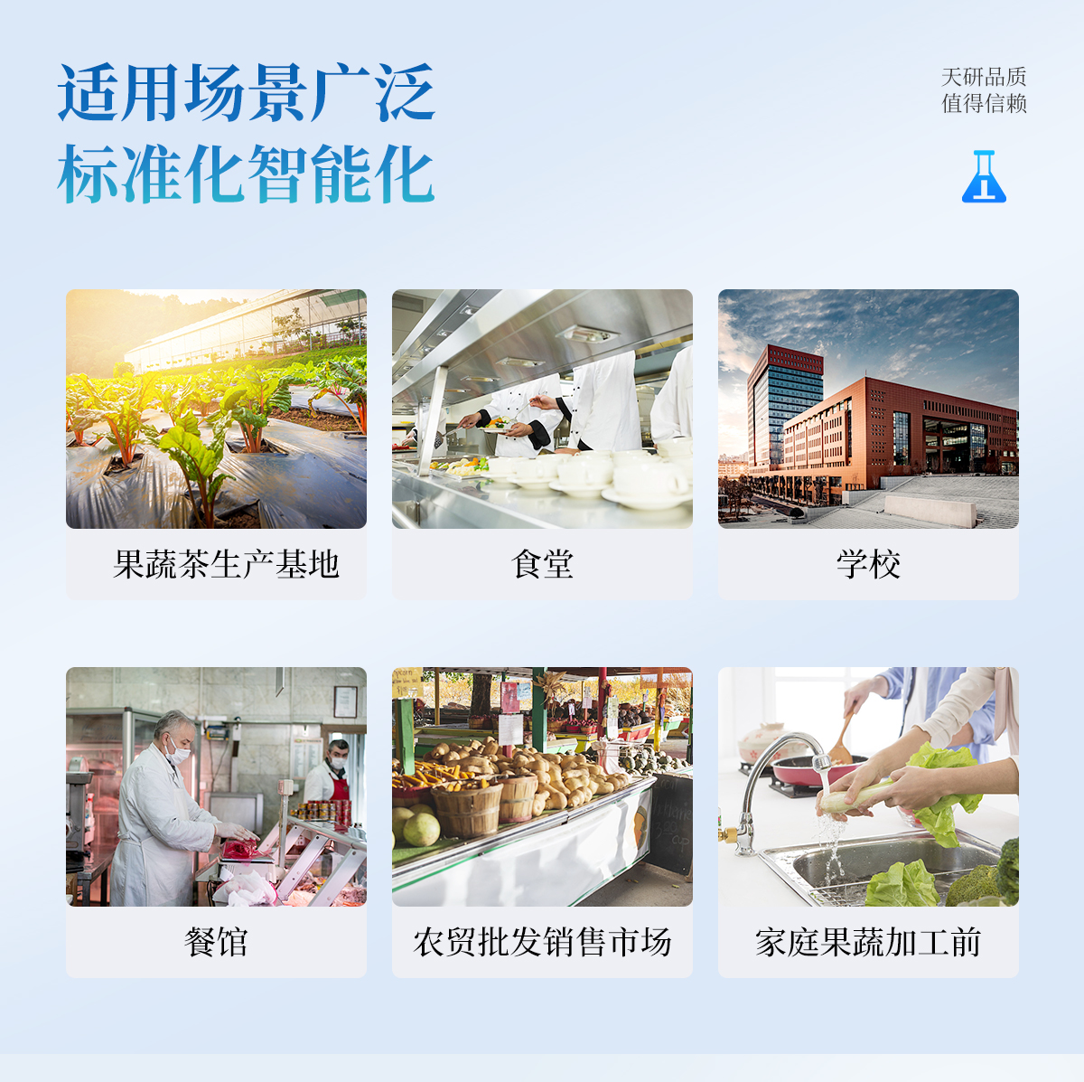 廣泛應用于主要用于蔬菜、水果、茶葉、糧食、農(nóng)副產(chǎn)品等食品中有機磷和氨基甲酸酯類農(nóng)藥殘留的快速檢測;此外還可用于果蔬茶生產(chǎn)基地和農(nóng)貿(mào)批發(fā)銷售市場現(xiàn)場檢測,餐館、學校、食堂、家庭果蔬加工前的安全速測等。