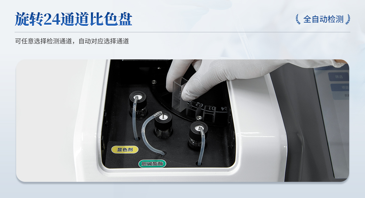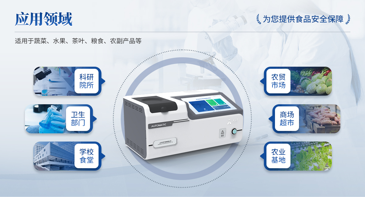 全自動(dòng)農(nóng)藥殘留檢測(cè)儀是依據(jù)國家標(biāo)準(zhǔn)方法(GB/T5009.199-2003),采用酶抑制率比色法對(duì)水果、蔬菜等農(nóng)產(chǎn)品中有機(jī)磷和氨基甲酸酯類農(nóng)藥含量進(jìn)行快速準(zhǔn)確的檢測(cè)。該設(shè)備廣泛應(yīng)用于蔬菜批發(fā)市場(chǎng)、超市、商場(chǎng)、食藥監(jiān)等部門的蔬菜和水果中的農(nóng)藥殘留檢測(cè)。